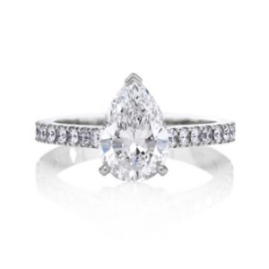 Metal, 18K Rose Gold, 18K White Gold, 18K Yellow Gold, Setting Shape, Pear Setting, Ring Style, Trilogy